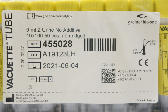 - Greiner Bio-One 455028 Vacuette Tube 9ml Z Urine 16 x 100 - Box of 50