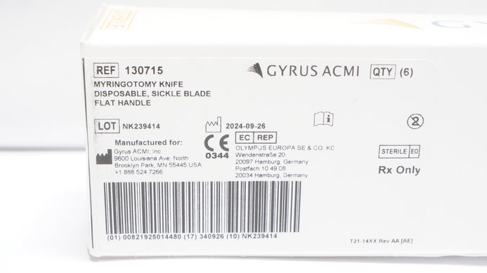 - Gyrus ACMI 130715 Myringotomy Knife Disposable,Sickle Blade Flat Handle-Box of 6