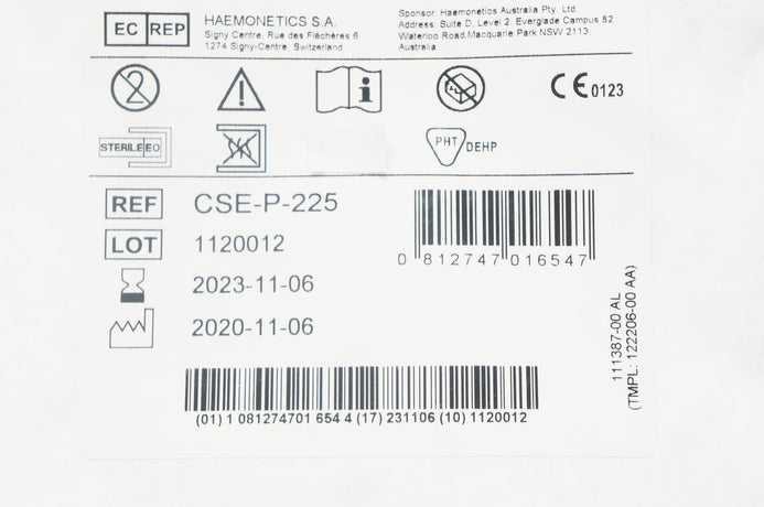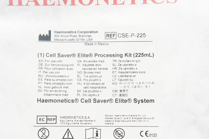 - Haemostatics CSE-P-225 Cell Saver Elite Processing Kit 225 mL