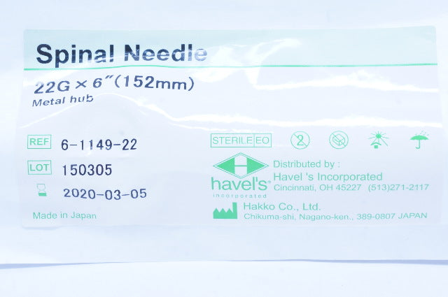 - Hakko 6-1149-22 Spinal Ndle Metal Hub 22Ga x 6inch (x)