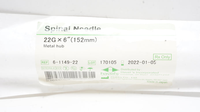 - Hakko 6-1149-22 Spinal Ndle Metal Hub 22Ga x 6inch (x)