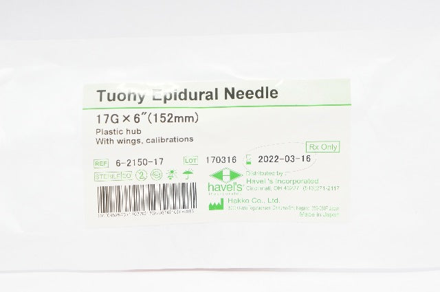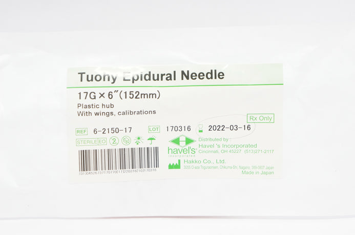 - Hakko 6-2150-17 Havel's Tuohy Epidural Ndle, 17G x 6inch (x)