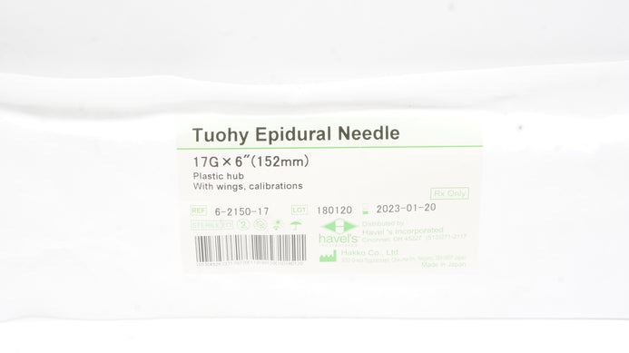 - Hakko 6-2150-17 Havel's Tuohy Epidural Ndle, 17G x 6inch (x)