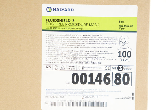 - Halyard 0014680 Fluidshield 3 Fog -Free Procedure Mask, Blue - Box of 100
