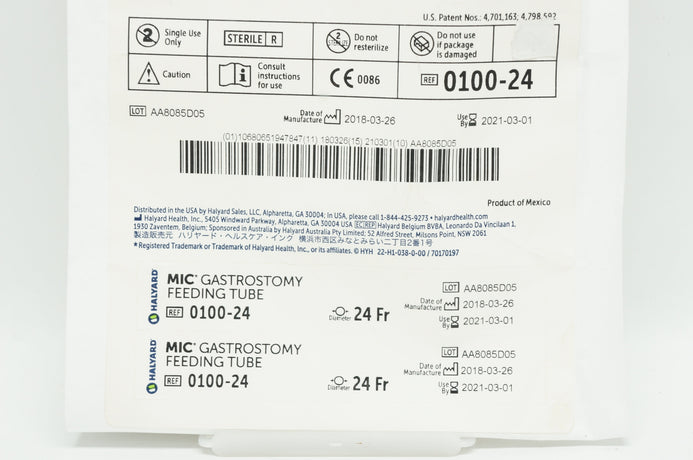 - Halyard 0100-24 MIC Gastrostomy Feeding G-Tube, 24 Fr x 7-10ml (x)