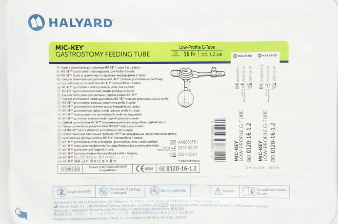 - Halyard 0120-16-1.2 MIC-KEY Gastrostomy Feeding Tube Low-Profile GTube 16Fx1.2cm