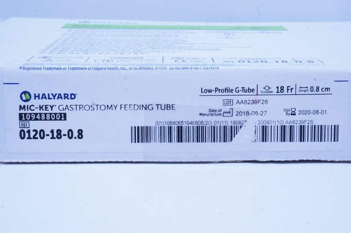 - Halyard 0120-18-0.8 MIC-KEY Gastrostomy Feeding Tube G-Tube 18Fr x 0.8cm (x)