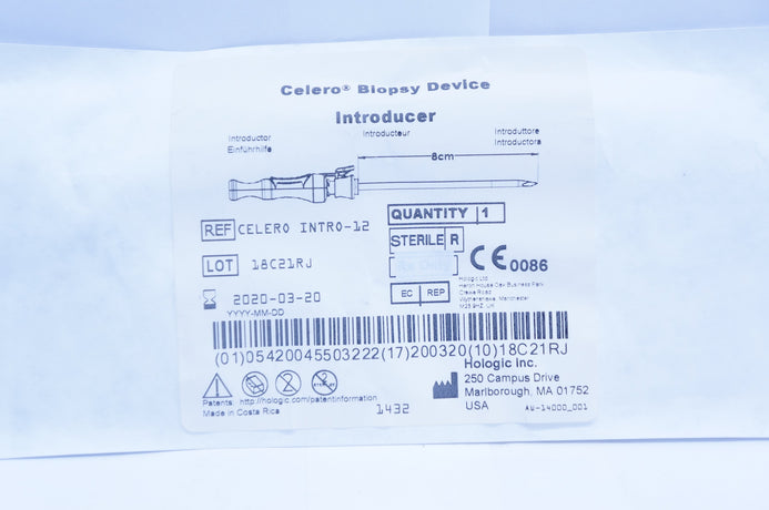 - Hologic CELERO INTRO-12 Celero Biopsy Device Introducer 8cm (x)