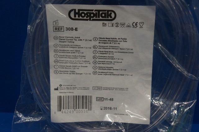 Hospitak 308-E Nasal Cannula, Adult Flared Curved Tip, With 7', Oxygen Tubing
