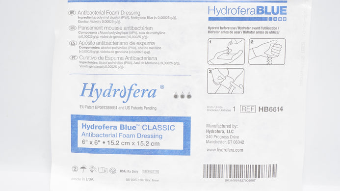 - Hydrofera HB6614 Blue Antibacterial Foam Dressing 6inch x 6inch (x)
