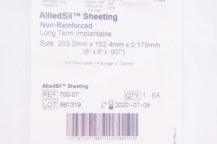 - Implantech 700-07 AlliedSil Sheeting 8inch x 6inch x .007inch (x)