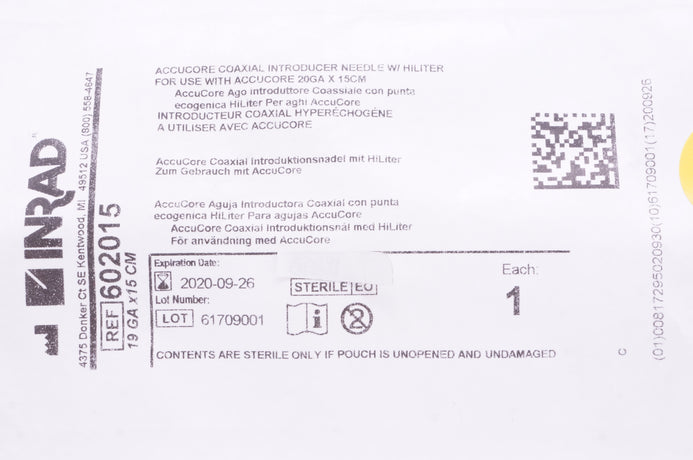 - Inrad 602015 Accucore Coaxial Introducer Needle w/ Hiliter 20Ga x 15cm (x)