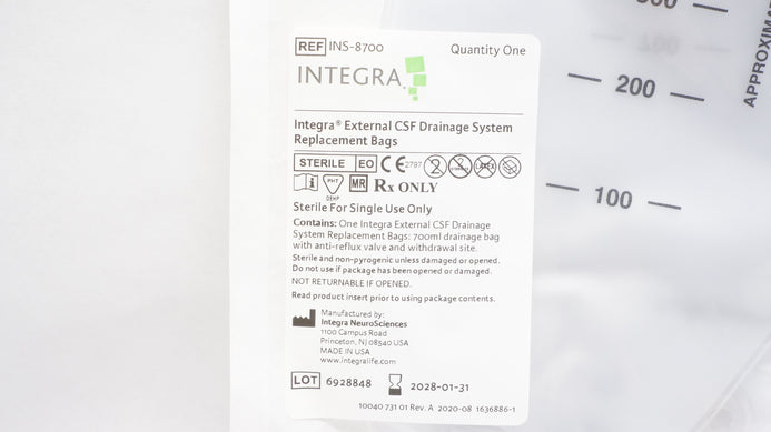 - Integra INS-8700 External CSF Drainage System Replacement Bags 700ml