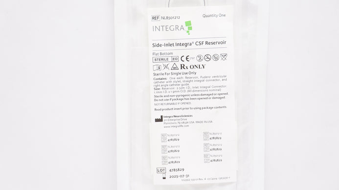 - Integra NL8501212 Side-Inlet Integra CSF Reservoir 2.5cm I.D. Flat Bottom