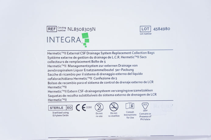 - Integra NL8508305N Hermetic II External CSF Drainage System Replacement Collection Bags 700ml