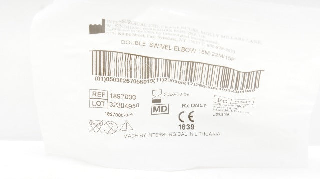 - Intersurgical 1897000 Double Swivel Elbow, 15M-22M/15F