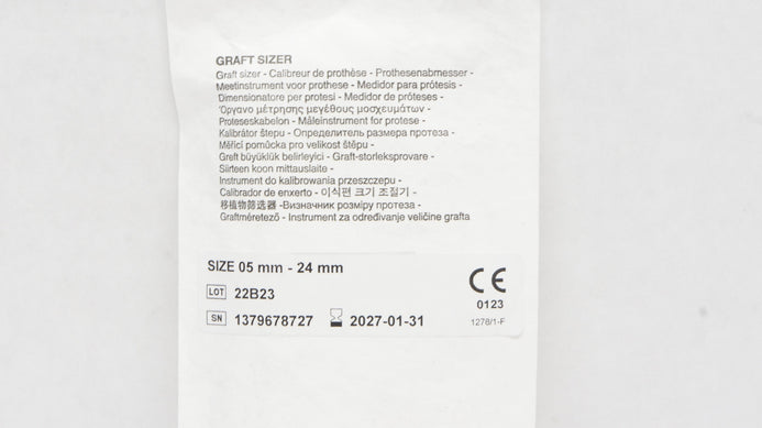 - Intervascular Getinge Graft Sizer 0.5mm-24mm