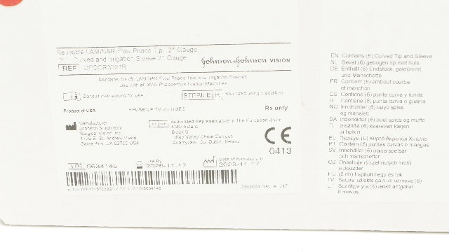 - Johnson&Johnson OPOCR3021R Laminar Flow Phaco Tip&Irrigation Sleeve 21Ga-Box of6