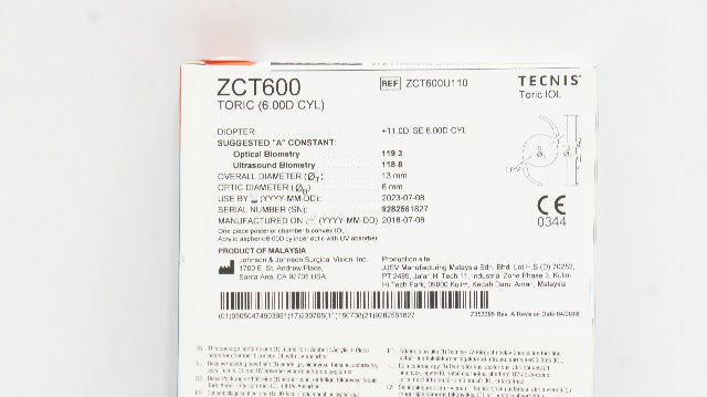Johnson&Johnson ZCT600U110 +11.0D SE 6.00D CYL Tecnis Toric IOL (x)