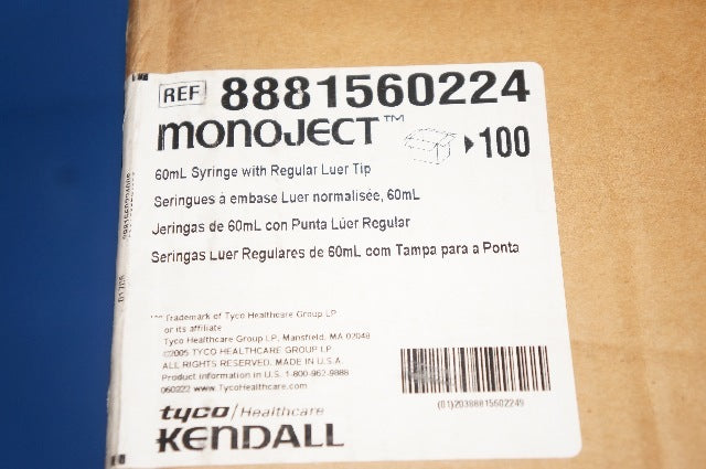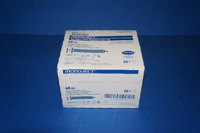- Kendall 8881560224 Monoject 60mL Syringe with Regular Luer Tip ~ Box of 100