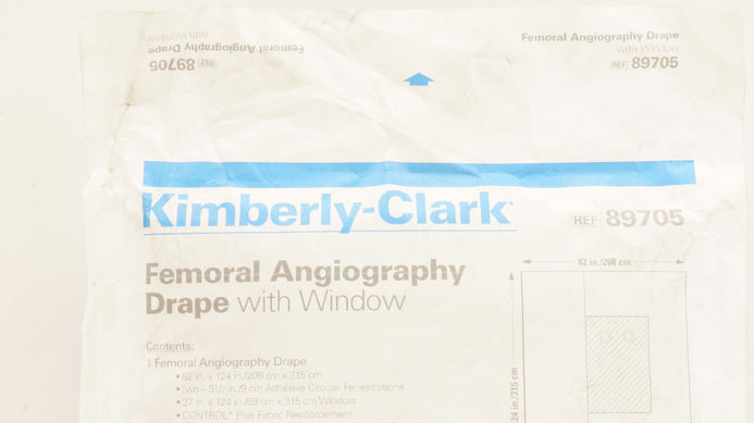 - Kimberly-Clark 89705 Femoral Angiography Drape W/ Single Window, 82in. x 125in.