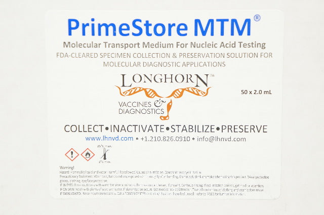 - Longhorn PrimeStore MTM For Nucleic Acid Testing 2.0mL - Box of 50