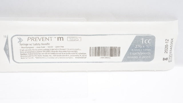 Magellan 26541 Prevent M Syringe W/ Safety Ndle 1cc 27G x 1/2inch (x)