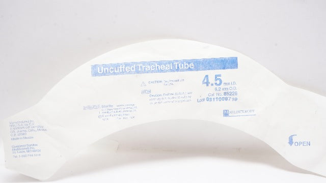 - Mallinckrodt 86226 Uncuffed Tracheal Tube 4.5mm ID x 6.2mm OD