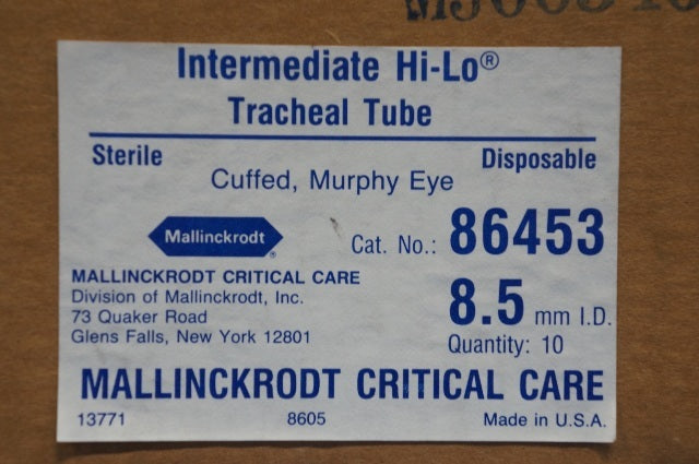 - Mallinckrodt 86453 Intermediate Hi-Lo Tracheal Tube 8.5mm ~ Box of 10