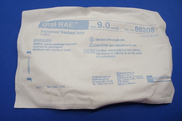 Mallincrodt 86208 Oral RAE Preformed Tracheal Tube Cuffed 9.0mm