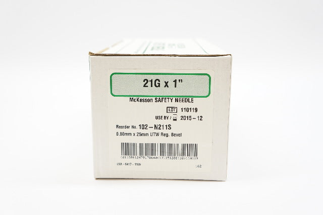 - McKesson 102-N211S Safety Ndle 21G x 1inch (x) - Box of 100