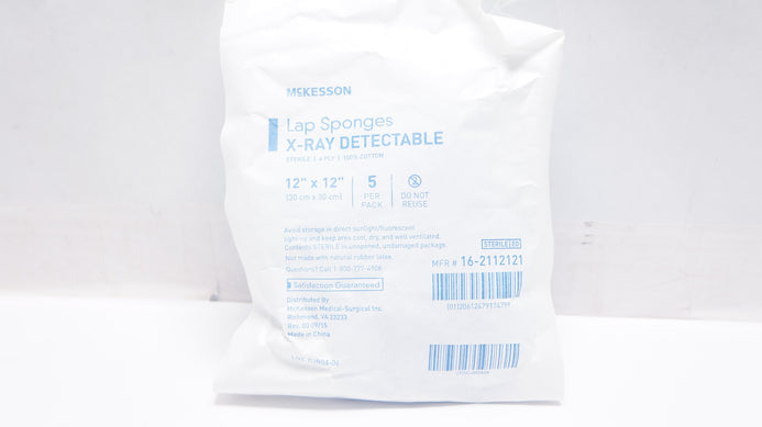 - Mckesson 16-2112121 Lap Sponges X-Ray Detectable 4-ply, 12In x 12In - Box of 5