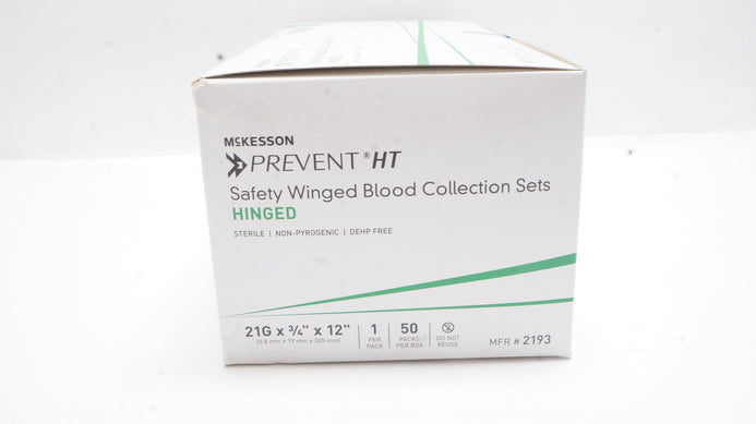 - Mckesson 2193 Prevent HT Safety Winged Blood Collection Sets Hinged - Box of 50