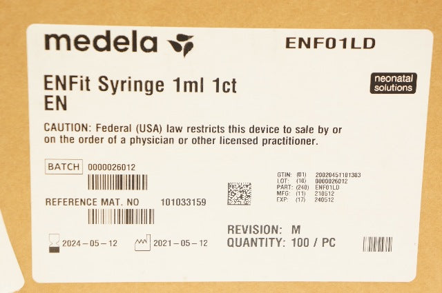 - Medela 101033159 EnFit Syringe 1ml 1ct - Case of 100