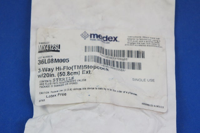 - Medex MX412SL 3-Way Hi-Flo Stopcock w/20in Ext