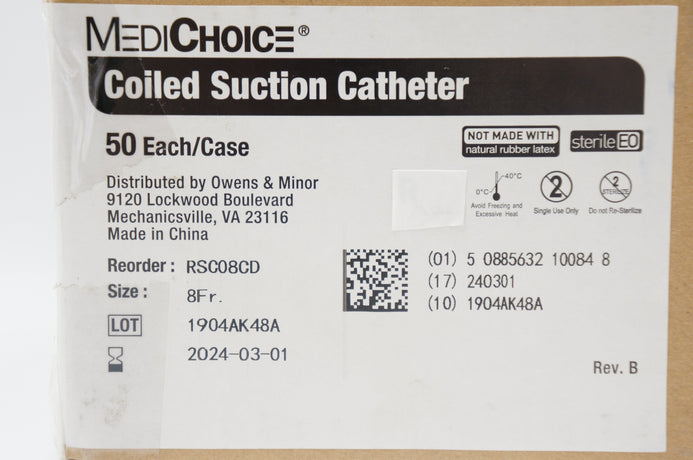- MediChoice RSC08CD Coiled Suction Cath. 8Fr. - Case of 50