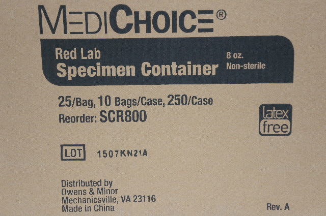 - MediChoice SCR800 Red Lab Specimen Container 8oz - Case of 250
