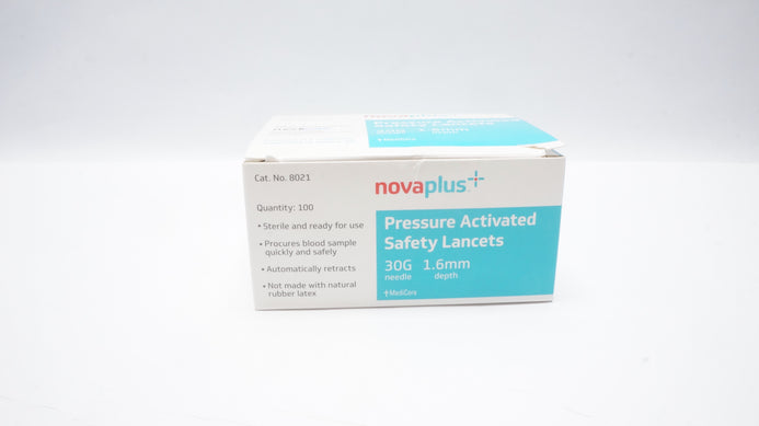 - Medicore 8021 Novaplus Pressure Activated Safety Lancets 30G x1.6mm - Box of 100