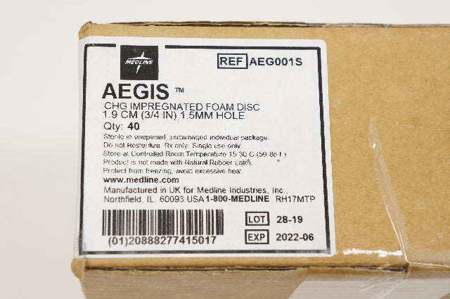 - Medline AEG001S AEGIS CHG Impregnated Foam Disc 3/4inch x 1.5mm Hole - Box of 40