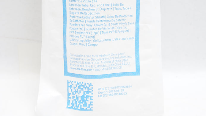 Vinyl Catheter 5Fr, Specimen Tube, Cap, and Label, Protective Catheter Sheath, Powder-Free Vinyl Gloves, PVP Swabsticks (3/pk), Lubricating Jelly, Drape