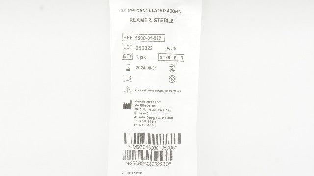 - MedShape 1500-01-050 Reamer, Sterile, Cannulated Acorn 5.0mm