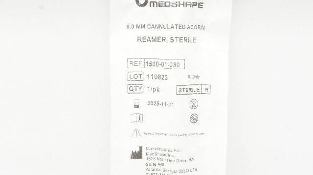 - MedShape 1500-01-080 Reamer, Sterile, Cannulated Acorn 8.0mm