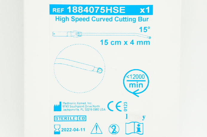 - Medtronic 1884075HSE High Speed Curved Cutting Bur 15 Degree <1200min 15cm x 4mm