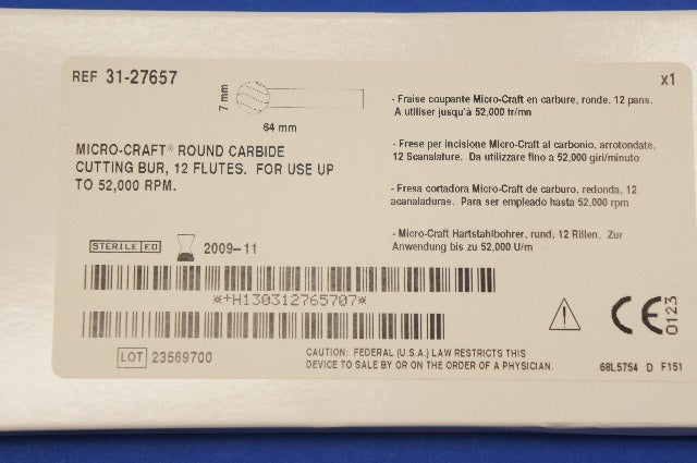 - Medtronic 31-27657 Xomed Micro-Craft Round Carbide Cutting Bur, 12 Flutes (x)