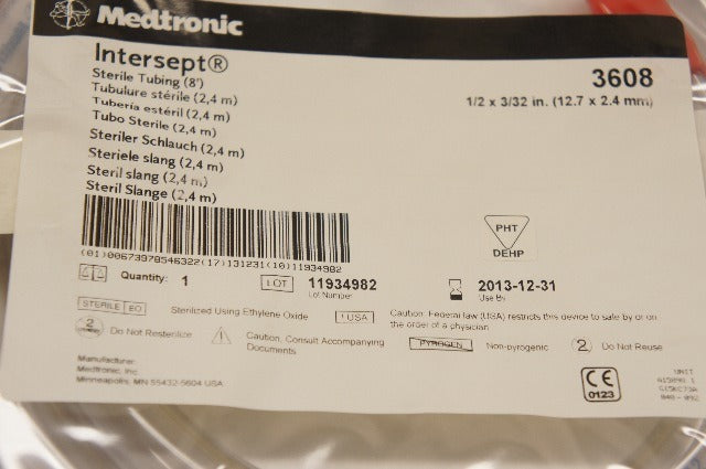 Medtronic 3608 Intersept Sterile Tubing 8' 1/2 x 3/32"