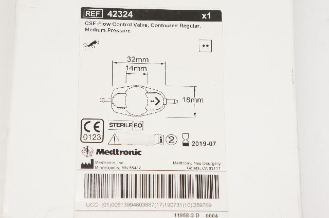 - Medtronic 42324 CSF-Flow Control Valve, Medium Pressure 32mm x 18mm (x)