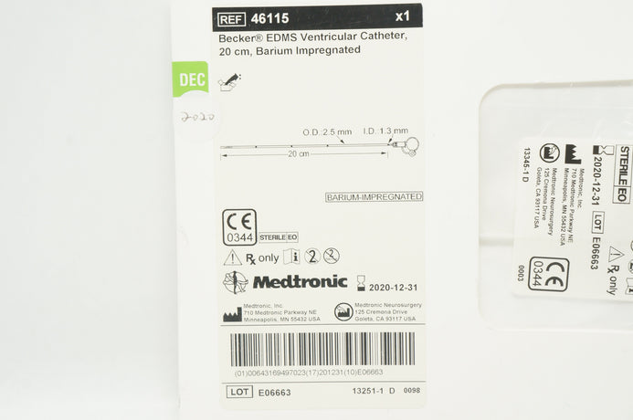 - Medtronic 46115 Becker EDMS Ventricular Cath. 20cm Barium 1.3mm x 2.5mm (x)