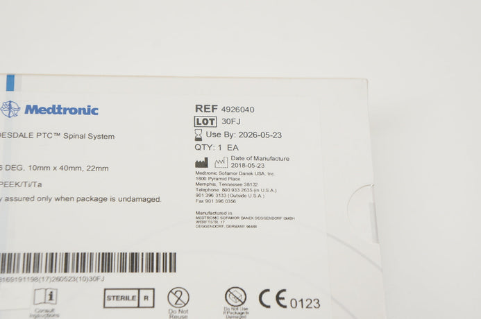 - Medtronic 4926040 CLYDESDALE PTC Spinal System Cage, Size 6deg., 10mm x 40mm