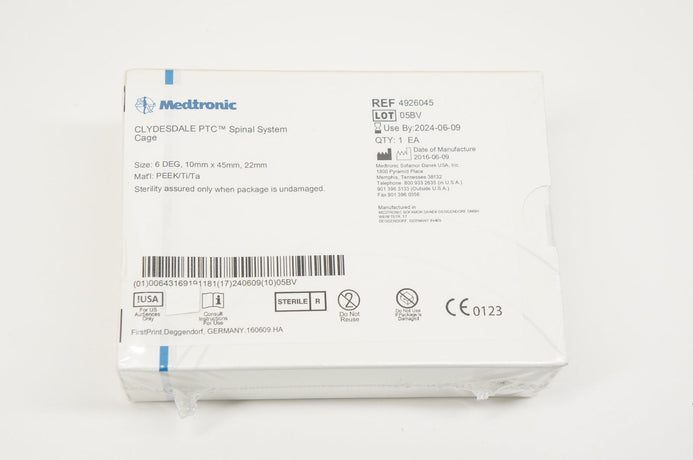 - Medtronic 4926045 CLYDESDALE PTC Spinal System Cage, 6deg., 10 x 45mm, 22mm