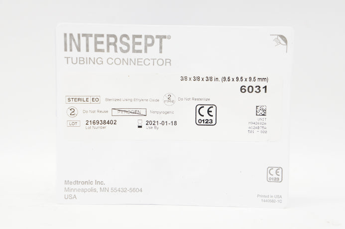 - Medtronic 6031 Intersept Tubing Connector 3/8 x 3/8 x 3/8inch